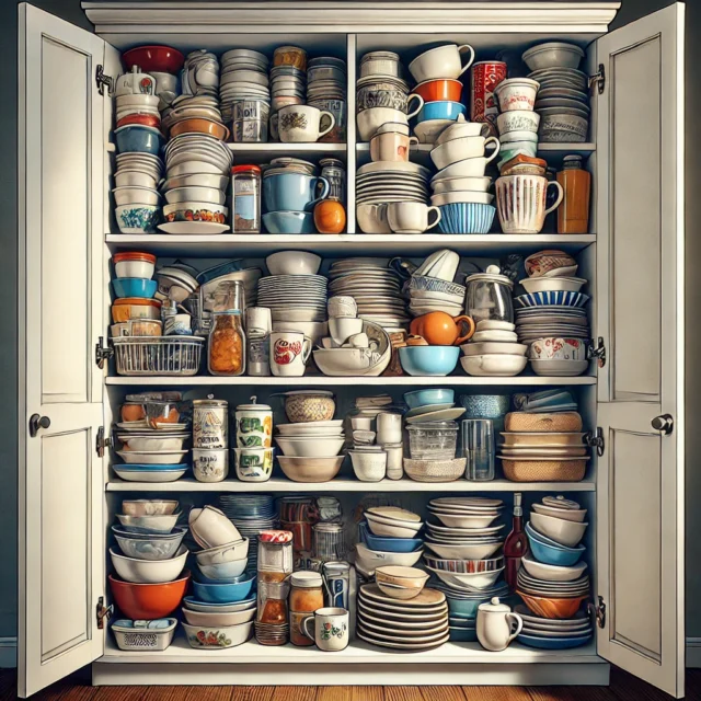 Jetzt stell dir vor, du brauchst die Tasse ganz hinten. Na, viel Spaß dabei! Du musst erst mal alles andere rausräumen, um ranzukommen. So viel zur „optimalen“ Auslastung.